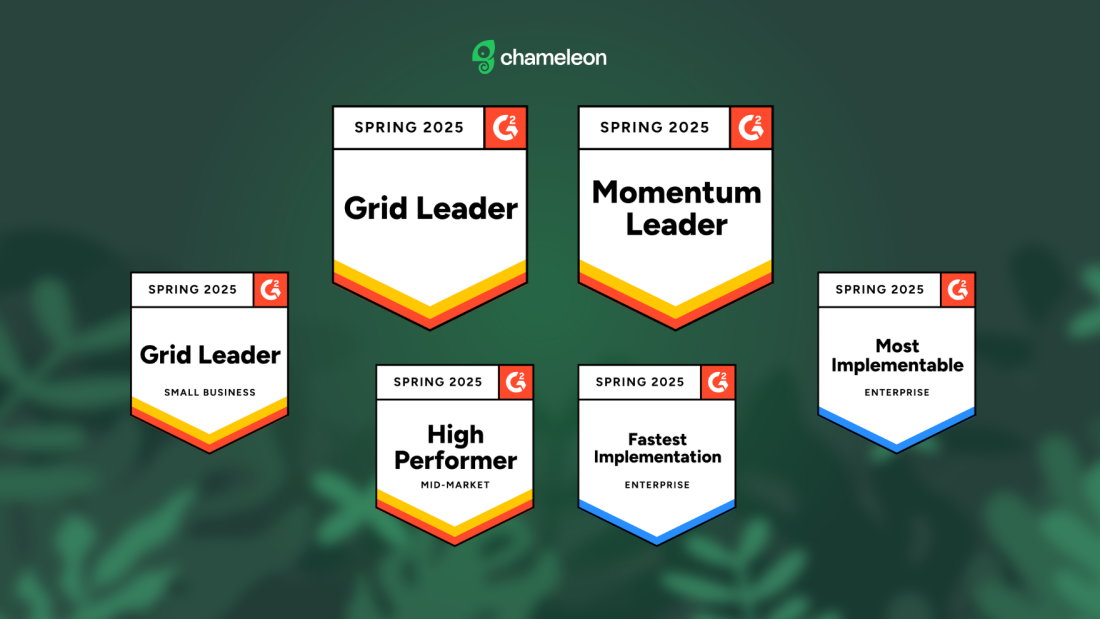 Chameleon was just recognized as a Leader in our category for the fifth season in a row. Above that, we've been ranked the #1 "Self-Serve Solution" for Enterprise teams, and we're moving faster to proudly sport the "Momentum Leader" badge again. We’re thrilled and humbled, but we know you’ve heard that before. These aren’t vanity badges. They’re signals that smart teams are seeing serious impact: