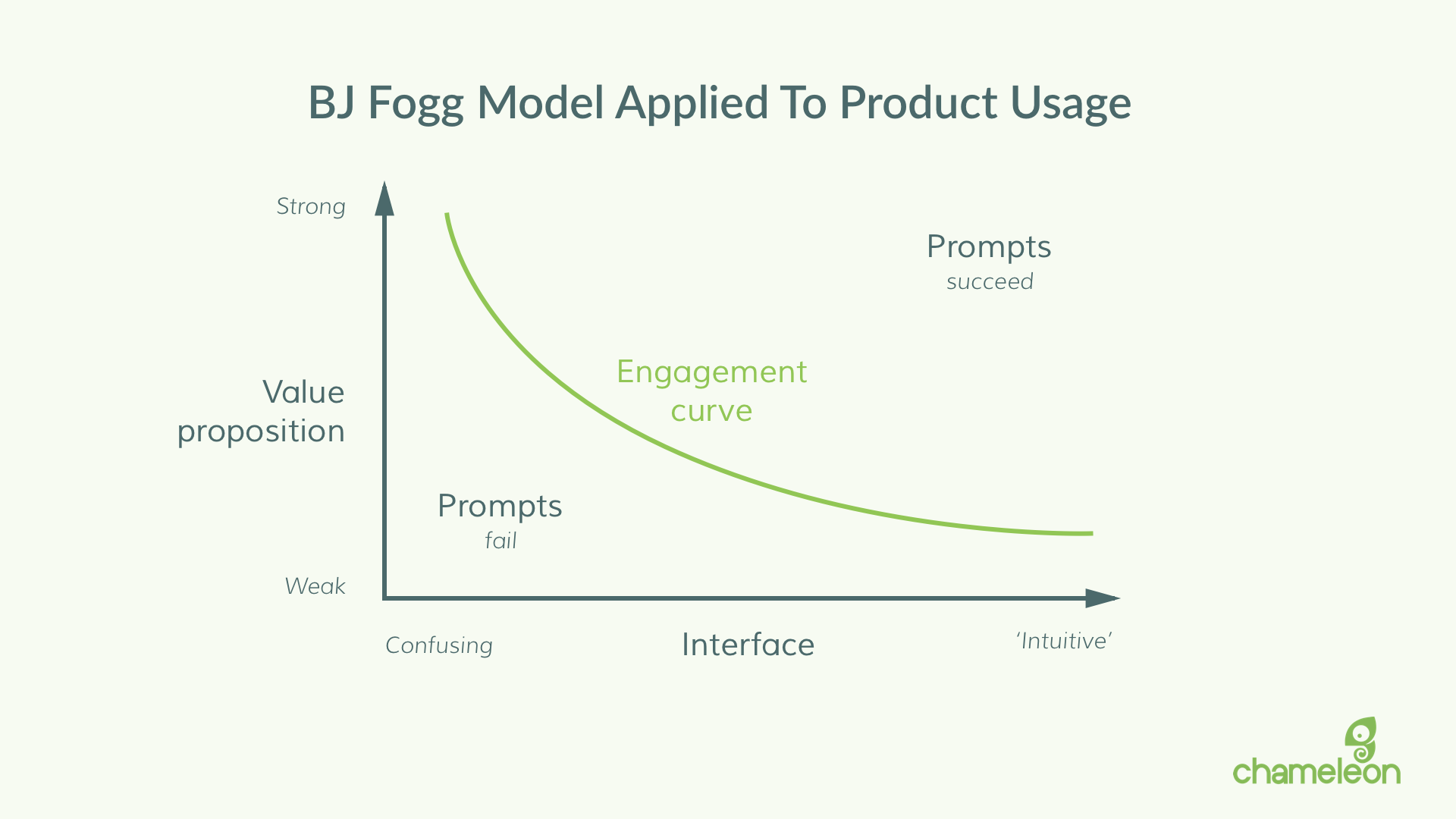 Users can also benefit from ‘prompts’ that trigger their desire to take action. These are more likely to succeed on the right side of the engagement curve. So when the product has a strong enough value proposition and the interface is simple enough, then a prompt may result in user action.