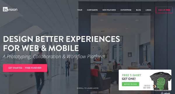 InVision’s landing page in November 2013 (left) and 2014 (right). This is the first step in onboarding and has changed to match updated design standards.