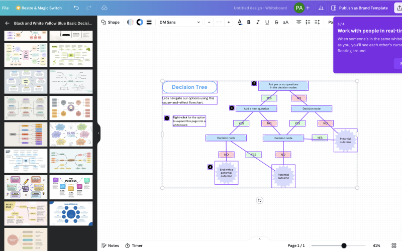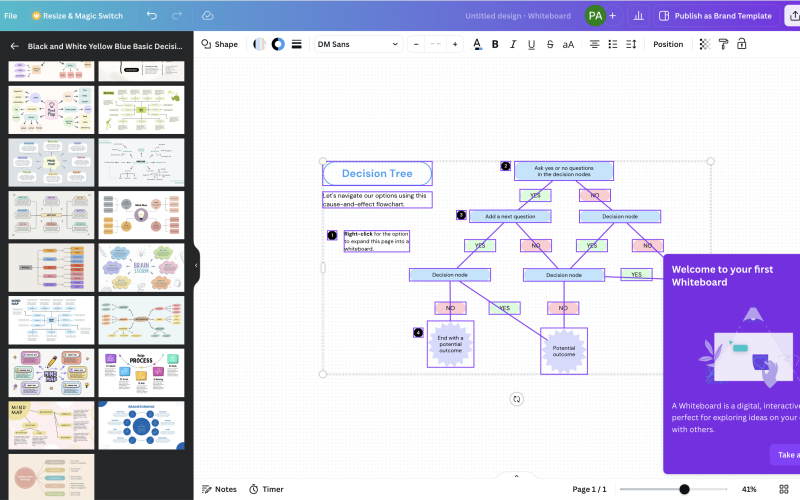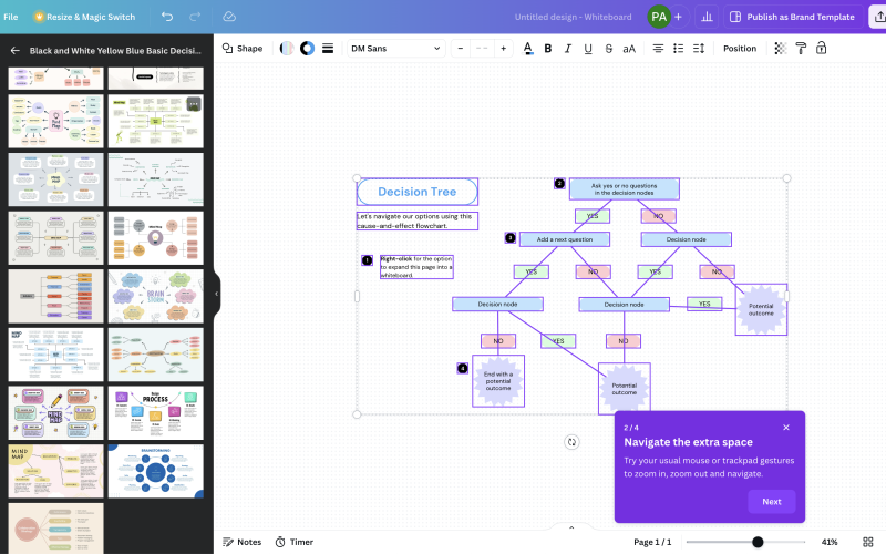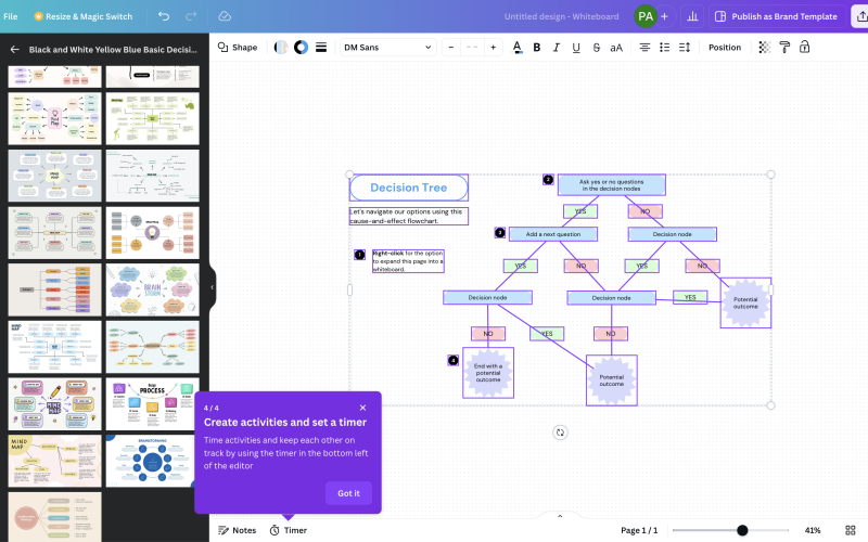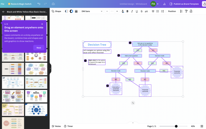 This Canva whiteboard tour is straightforward yet lively, gently nudging users to start their creative journey. It starts with a playful "drag an element" nudge, making the user feel like they're casually playing with ideas rather than diving into work. The guided steps focus on collaboration, navigation, and time management without overwhelming users with jargon. It’s simple, interactive, and highlights the core functionalities, making it feel like you’re taking a tour with a friendly guide rather than a robotic checklist—perfect for turning first-timers into whiteboard pros.