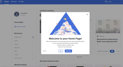 A two-button Microsurvey that announces updates to the Degreed homepage and invites users to switch to the updated version. Users can also dismiss and wait for the updates to be live for everyone, but who would want to avoid a peak? π