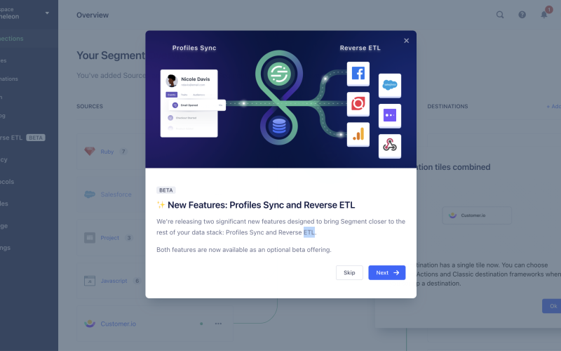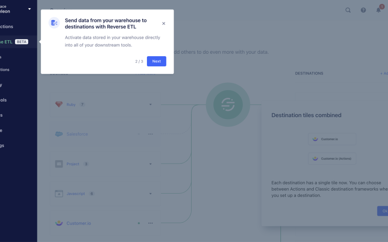 Segment keeps it straightforward with this onboarding modal for the Event Tester. The message is clear: here’s a tool that lets you test your event connections, inspect the details, and see how things flow from Segment to your destination. The design is no-frills, focusing on delivering just the right amount of info to get you started without the fluff. With a big blue “Got it!” button, it’s easy to dive right in. This modal does a solid job of guiding users through a technical feature without making it feel overwhelming—clean, concise, and ready to go.