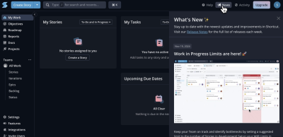 Shortcut uses an Embeddable Card to nudge new users to discover their "Roadmaps" feature. The team uses a catchy gif to showcase the feature and offers users the chance to learn more or see examples to get inspired.